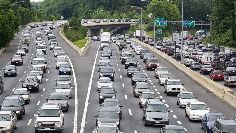 Traffic Jam on Capitol Beltway, Washington DC on a cloudy overcast day.